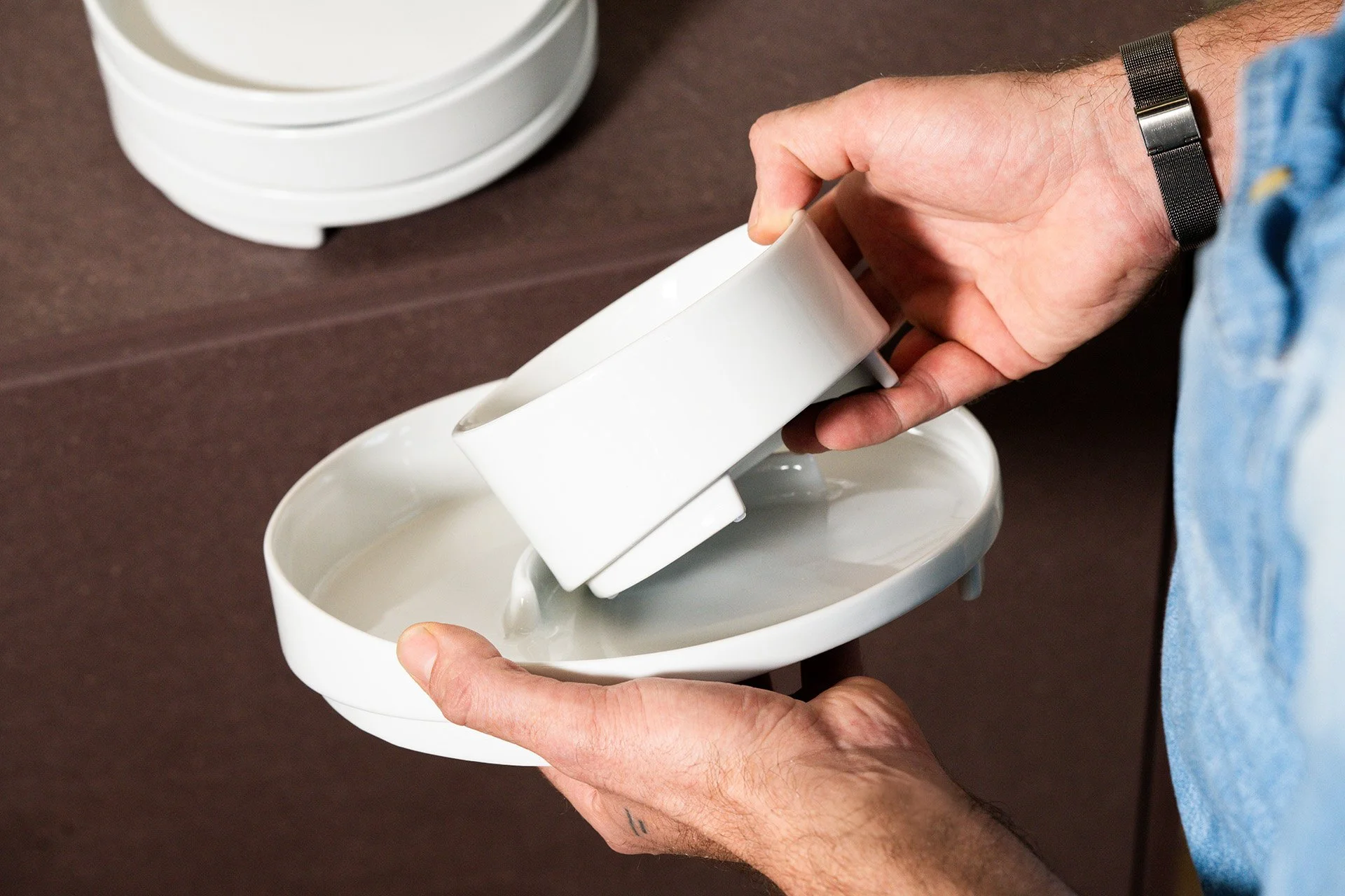 Die erste Idee entstand im Austausch mit einer betroffenen Person. Eine Bedürfnisanalyse von Menschen mit unterschiedlichen Behinderungen bildete die Grundlage für kwer. Das Ziel: Ein Geschirrset zu entwickeln, das von möglichst vielen Menschen genutzt werden kann. Ohne Stigmatisierung. Ohne Kompromisse in der Ästhetik oder der Funktionalität.